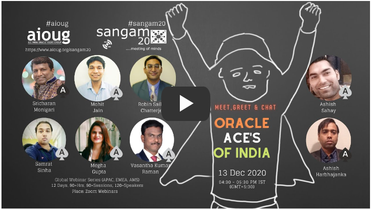 INOAUG Xplore session Ashish Sahay October 27, 2022 Read More Meet, Greet, Chat with Oracle ACE Community from India Session 2 Ashish Sahay December 28, 2020 Read More APEX India: Creating and Utilizing Custom Templates in Oracle APEX Ashish Sahay November 30, 2020 Read More