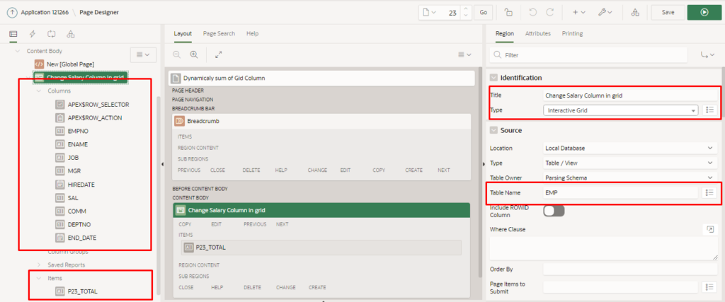 - Need to create an editable interactive grid report using emp table and Page item Px_ITEM.