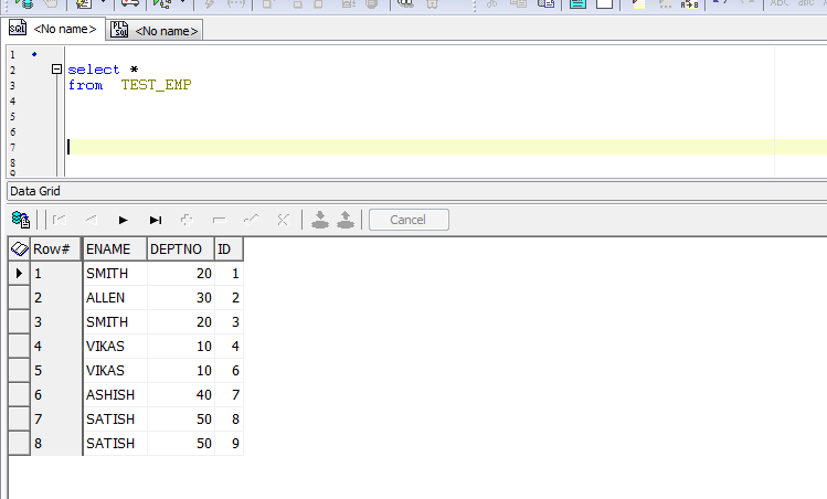 (SELECT max (ID) FROM test_emp GROUP BY ename);