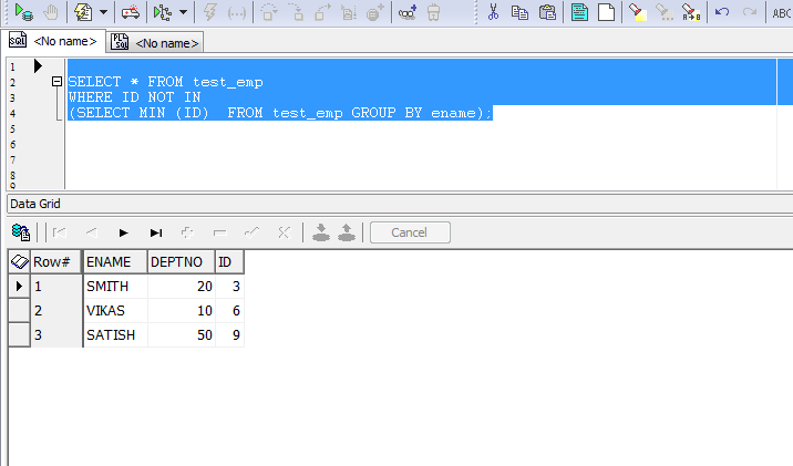 (SELECT MIN (ID) FROM test_emp GROUP BY ename);