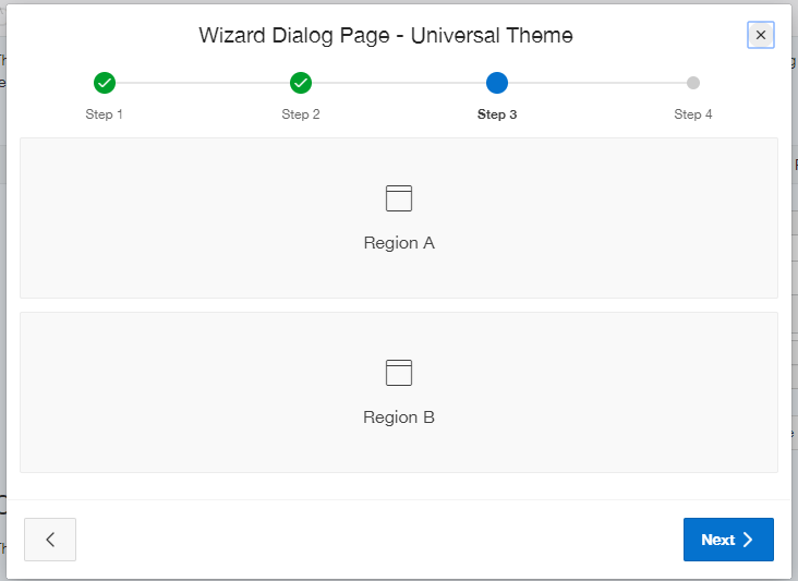 The page is presented as a normal Application Express application page. - Modal Dialog
