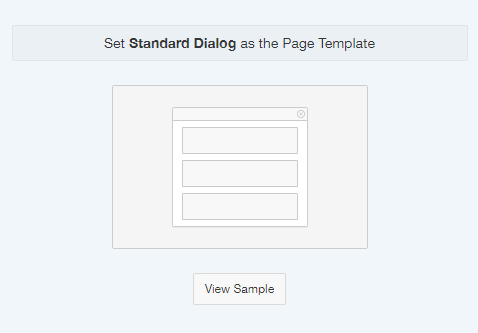 These page templates can be loaded as either modal or non-modal (pop-up) dialogs and are very useful for displaying commonly used forms, reports, and other components. Standard.