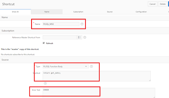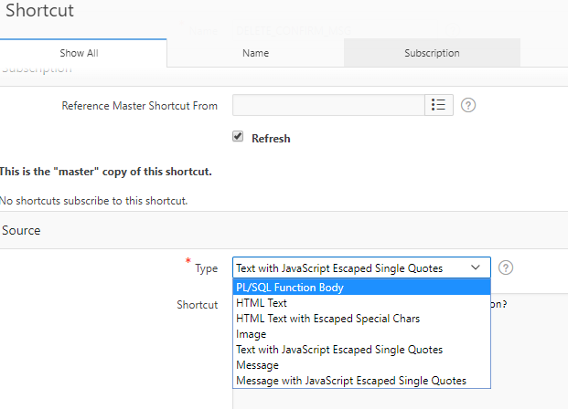 - We have several source types available to populate the shortcut variables. * PL/SQL Function body