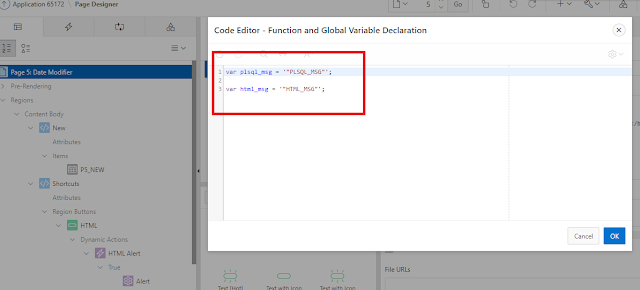 APEX shortcut variables are best in dynamic use in Javascript code. We can fetch data from database or can use any hard coded text.