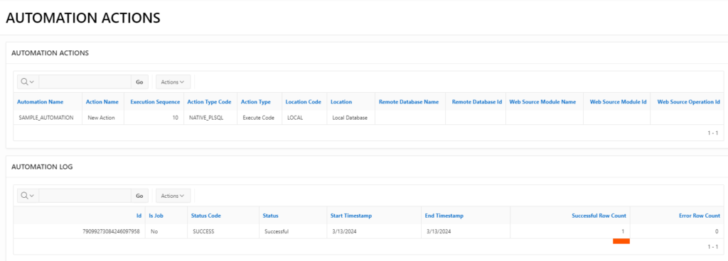 - APEX_AUTOMATION_LOG : Log of automation executions. APEX_APPL_AUTOMATIONS