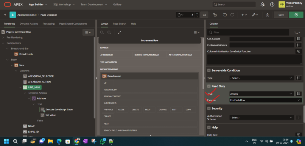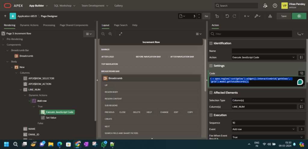 var i = 0; // Global variable to maintain the row countStep 2: Create a Dynamic Action