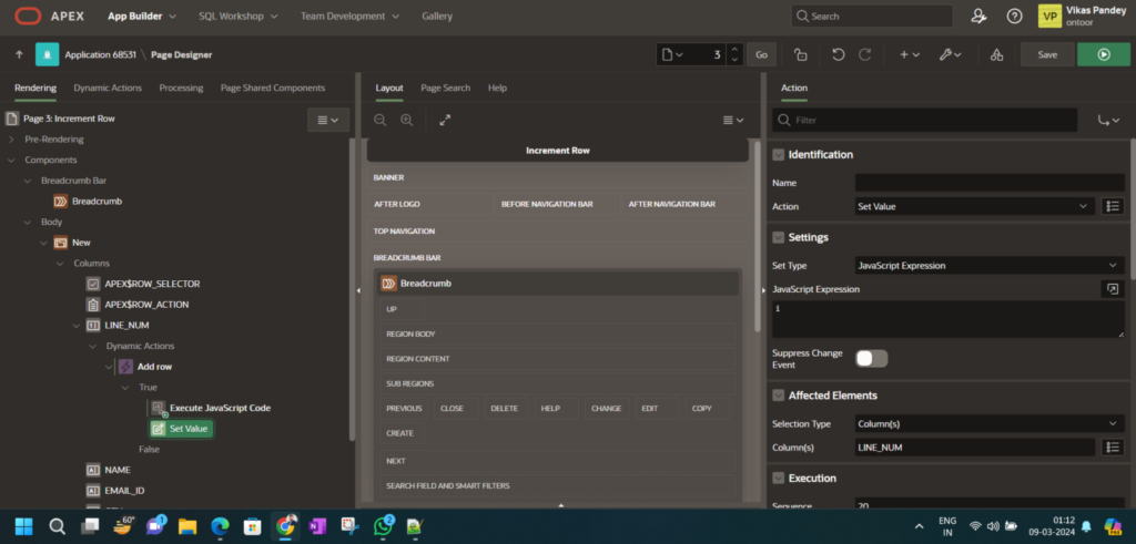 Create a dynamic action to update the row number in the “ID” column when a new row is added to the Interactive Grid.