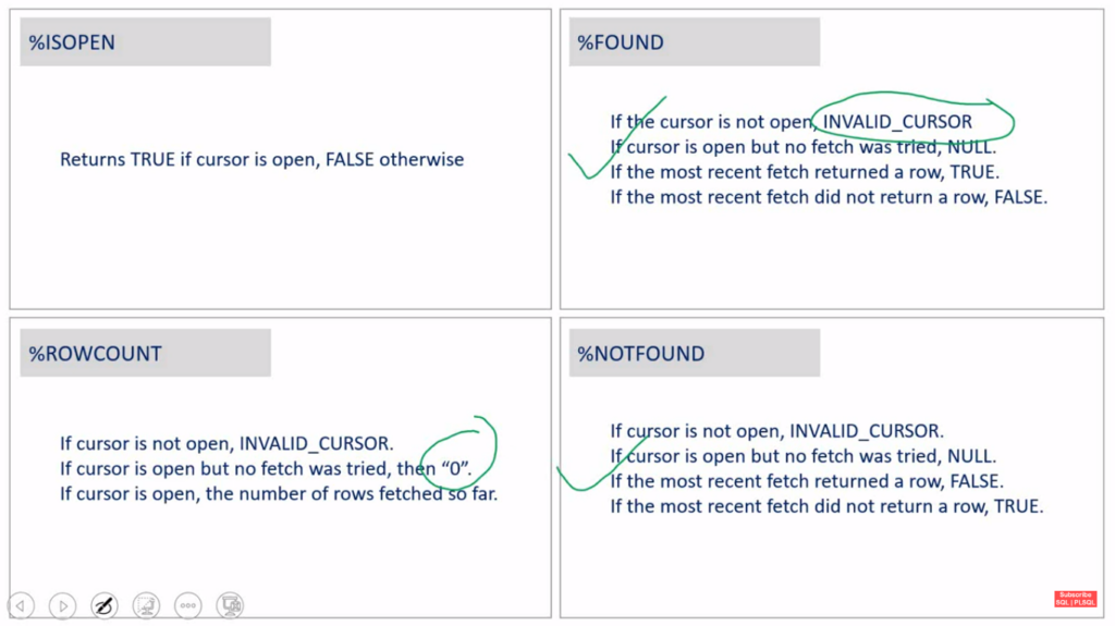 Cursor Attributes: Attributes Is The Way By Which We Can Get The Information Or Run Time Information About The Cursor Called Cursor Attributes.