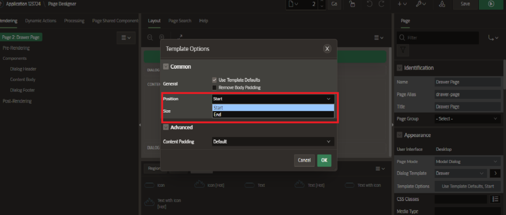 Create a page as a Modal Dialog in which set Dialog Template => Drawer as per screenshot.