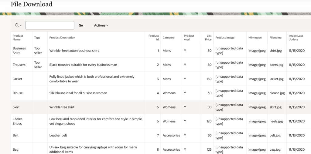Oracle APEX provides many ways to download a file from the database. Each and every method is declarative and easy to implement. Whether you’re managing reports, generating dynamic content, or simply offering users the ability to access stored documents, APEX provides straightforward solutions that can be implemented without extensive coding.