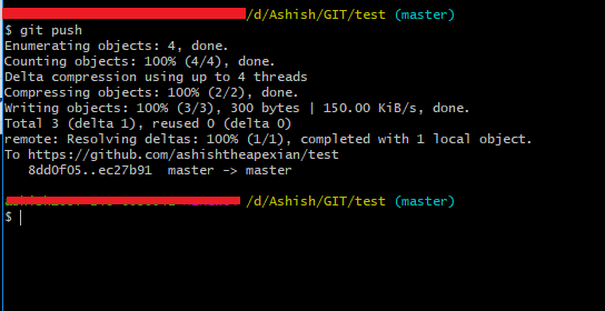 Writing objects: 100% (3/3), 300 bytes | 150.00 KiB/s, done.