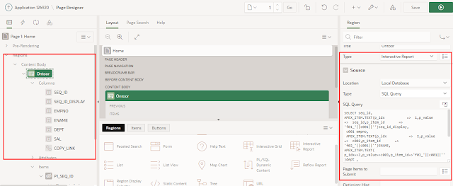 END;- Now Based on Collection “DUPLICATE”, we will Create an Interactive Report. Define column attribute in the Property Editor in security section and OFF Escape special characters.