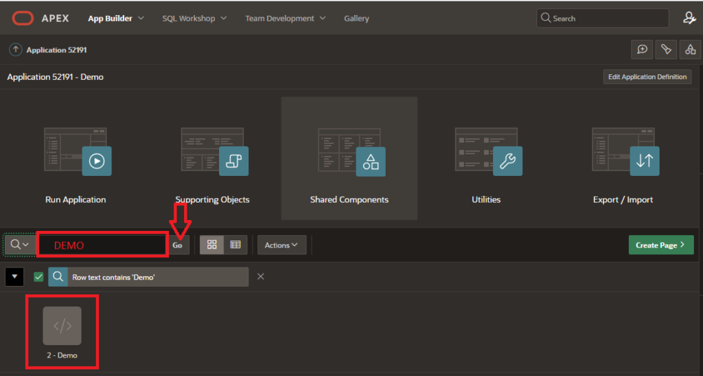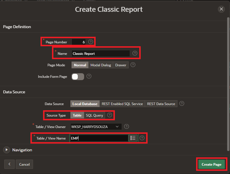 from EMP;6. Click on “Create Page” button to create the interactive report.