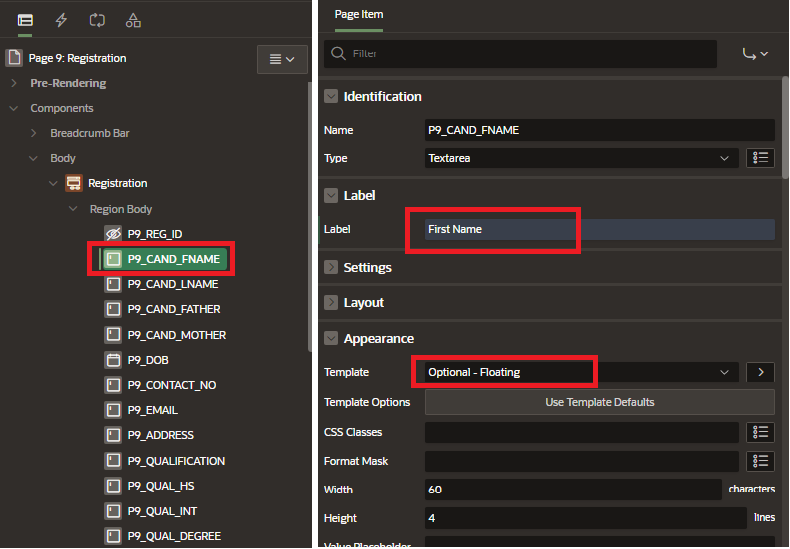 7.. Click on the page item and change “Label Name” and In the Appearance, Section select “Template” which you want to use.