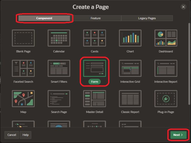 4..Select the Component tab and choose the “Forms” option and click on “Next”.