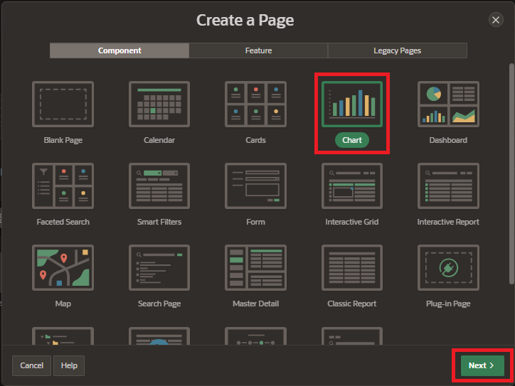 4. Select Component tab and choose the “Charts” option and click on “Next”.