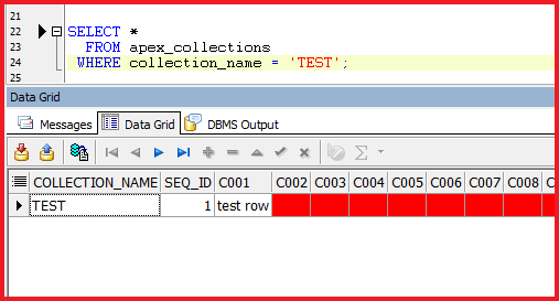 By executing the above PLSQL block we can simply query the APEX collections from PLSQL Developer/ SQL developer or Toad.