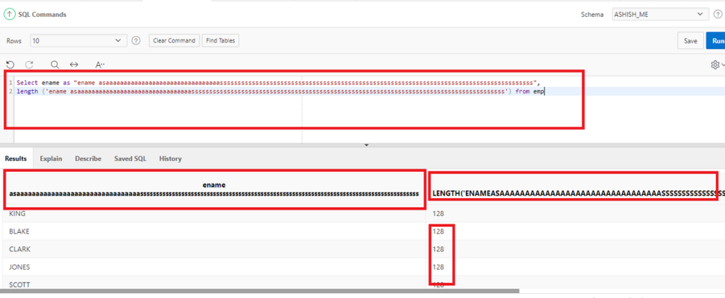 Select ename as "ename asaaaaaaaaaaaaaaaaaaaaaaaaaaaaaaaassssssssssssssssssssssssssssssssssssssssss