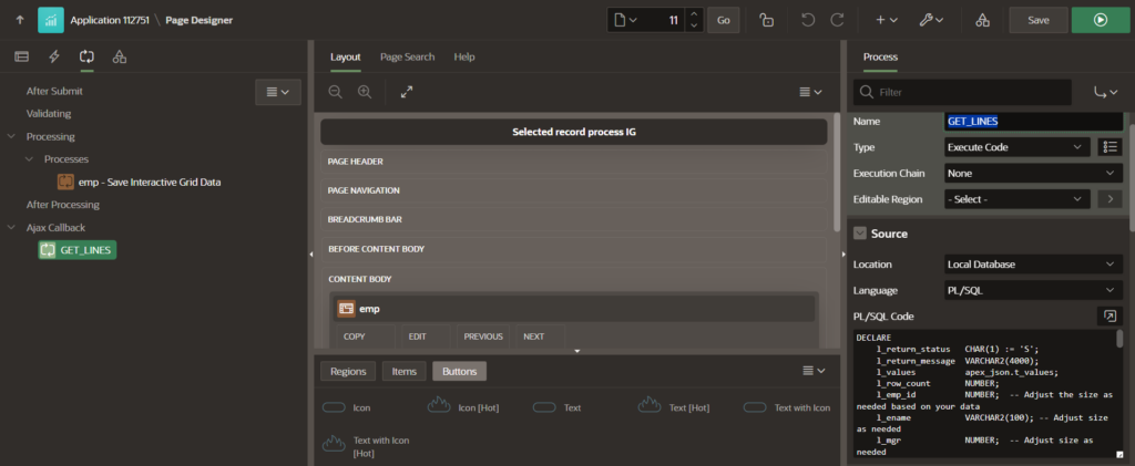 When your application requires processing of selected records from an Interactive Grid with multiple columns, it’s crucial to adopt a comprehensive approach. This ensures that all relevant data is captured, processed, and utilized effectively. Here’s a step-by-step guide to handling such scenarios: