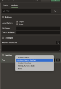 - PL/SQL Function Body: It creates headings based on a PL/SQL Function returning a colon-delimited list of names.