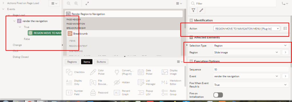 Render Apex Region to Navigation Menu in Oracle APEX version 1.0