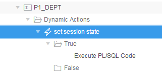 Let’s create a dynamic action that sets the value of P1_DEPT to 12 when a button is clicked.
