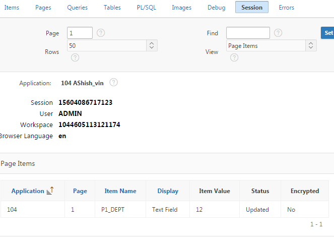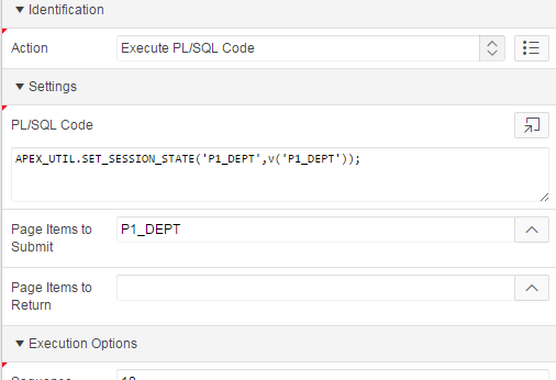 Let’s consider an example where we want to set the value of a page item P1_DEPT to 12 using PL/SQL.