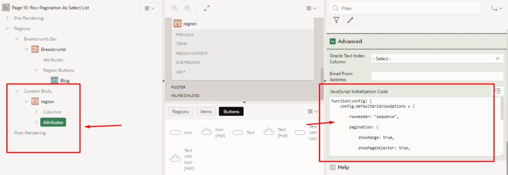 - Copy and Paste bellow JavaScript Code in Interactive Grid Attribute JavaScript Initialization Code section as per Screenshot: