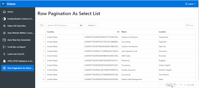 Set Row Pagination As Select List In Interactive Grid Oracle APEX