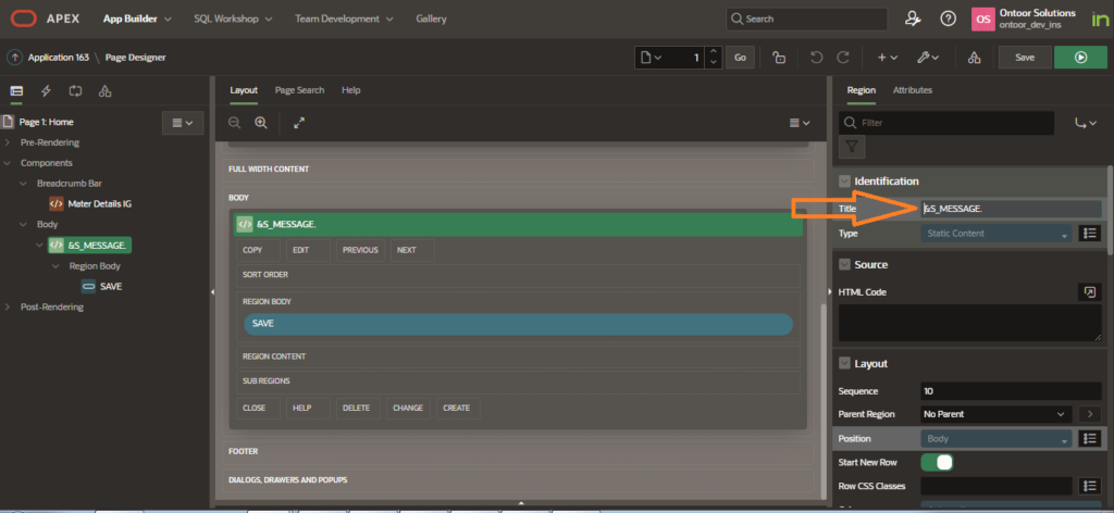 - Use of Substitution string in HTML, Region title name, Success Message, Item and button label name etc.