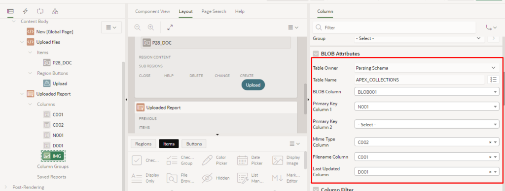 end;- To check uploaded record, use below query and set blob column attribute as per screenshot.