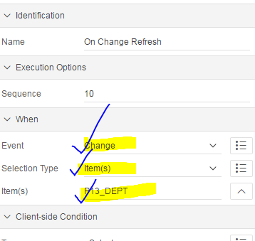 Create a dynamic action on change of ITEM and Refresh the report region.